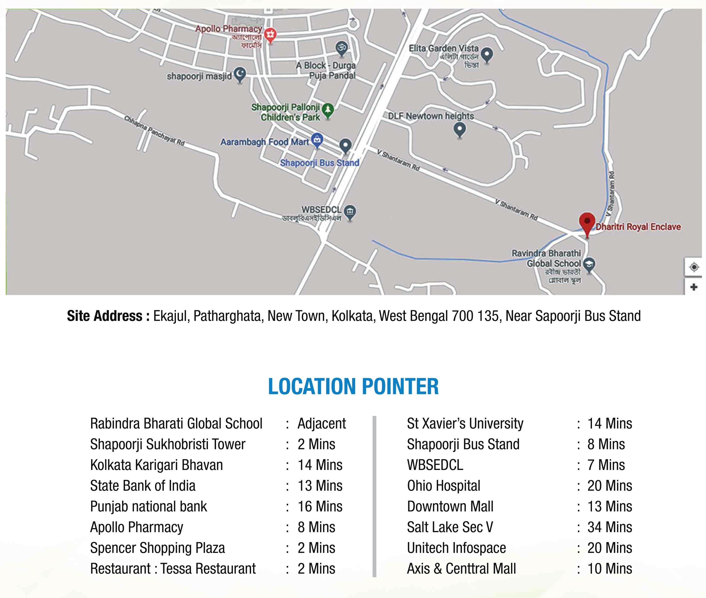 Shapoorji Sukhobristi Tower (2 mins), Elita Garden Vista (3 mins), Shapoorji Bus Stand (8 mins)